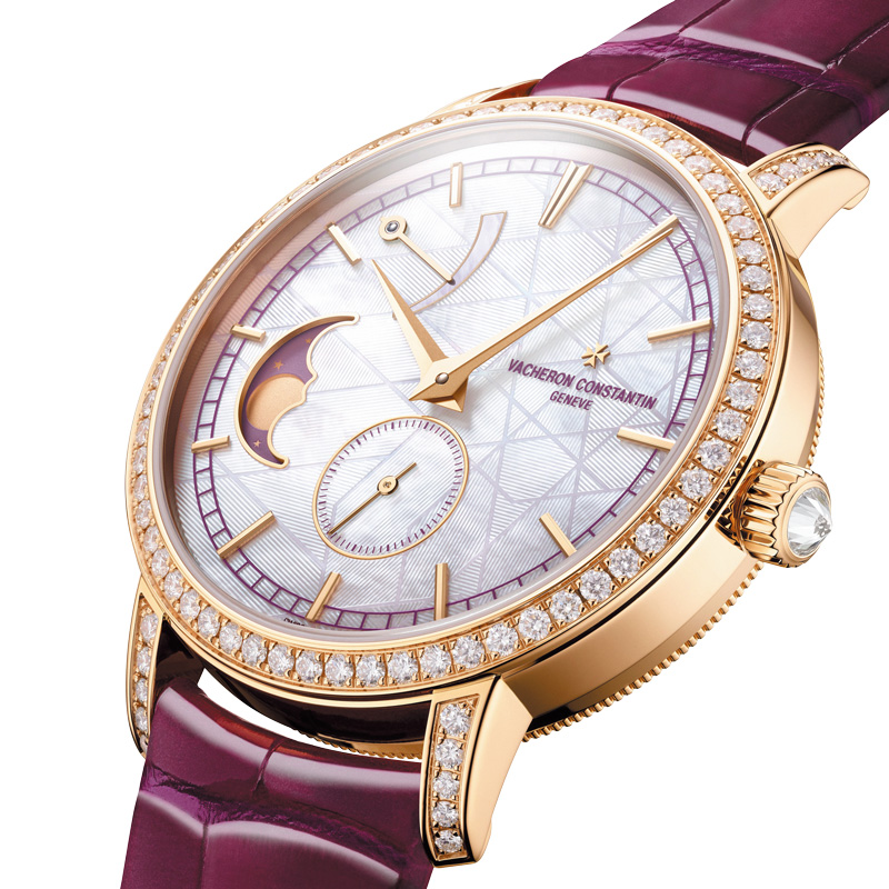 創業270周年を祝すマルタ十字から着想した新たなパターンがMOPダイアルに華やぐ。別体としたスモセコ内も模様を連続さているのがお見事。ムーンフェイズは122年調整不要の高精度を誇る。手巻き。径36mm。18KPGケース。アリゲーターストラップ。739万2000円。