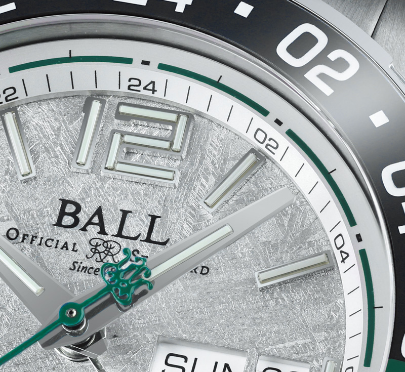 約4億5000万年前に地球に飛来としたとされるギベオン隕石をダイアルに使用。鉄とアルミの結晶が積層する様子に、宇宙の神秘を感じる。GMT機構が、左サイドのボタンで前後にクイックセットできるのが便利。限定1000本。自動巻き。径40mm。SSケース&ブレスレット。63万8000円。