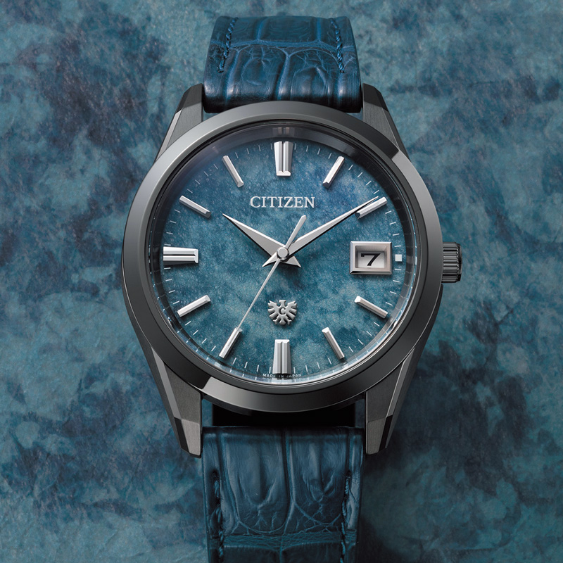 また人工物であっても偶然の産物で、唯一無二となるダイアル素材がある。光発電のために光を透過させる素材が必須となるシチズンは、ダイアルに藍染した和紙を用いた。和紙の質感と藍染による微妙なムラは、2つとして同じものが生まれることはない。