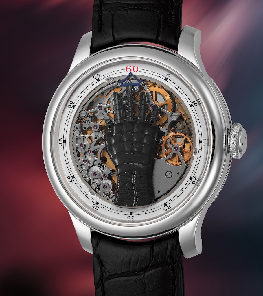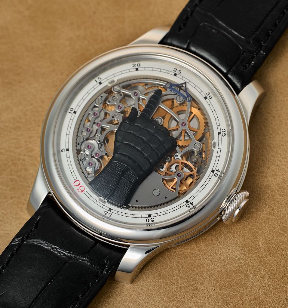 「五本の指のみを使って時間を表現できないか?」というフランシス・フォード・コッポラの無理難題にこたえ、9年の歳月を掛けてブランド初となるオートマタを駆使した時計を完成させた。5本の指が上下に動き、その組み合わせによって「時」を表示。そしてこの義手を囲む分インデックスのリングが1時間で1回転し、義手の上にある三角のマーカーによって分表示を行うという衝撃的な作品。