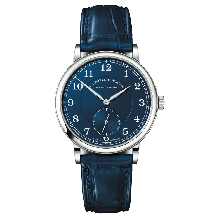 「1815」史上最小の34mmケースに、コレクションのブルーダイアルを組み合わせた。白いインデックスとWG製の針がブルーとハイコントラストを成し、小径ダイアルであっても視認性は抜群である。ケースの厚さは、わずか6.4mmと極薄。手巻き。径34mm。18KWGケース。アリゲーターストラップ。404万3600円。
