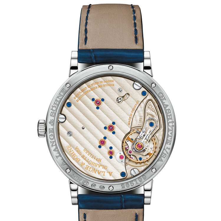手巻きの2針+スモールセコンドと、機構はオーセンティック。しかし径28.1mm、2.9mm厚のサイズで、「ランゲ1」が時計界で先駆けた約72時間(3日間)駆動を実現した点において革新的であり、傑作と呼ぶにふさわしい。ゴールドシャトンや完璧な手仕上げによる美観も、素晴らしい。チラネジ付きテンプがマニア好みだ。