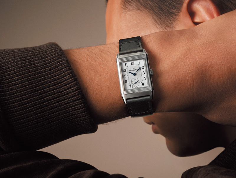 「レベルソ」は、ケースを独自の反転式とすることでメゾンの、さらには角型時計のアイコンとなった。ケース上下のゴドロン装飾や端正なダイアルデザインなど、アール・デコの影響色濃いクラシカルなスタイルは、知的な印象である。多彩な機構を展開する中、ペアなら裏蓋に記念日や名前などが刻めるモノフェイスが正解。着けたままでもケースを反転すれば、思い出や相手の気持ちを見返すことができる。