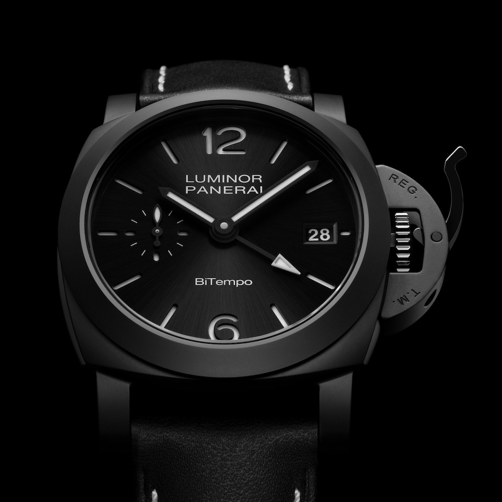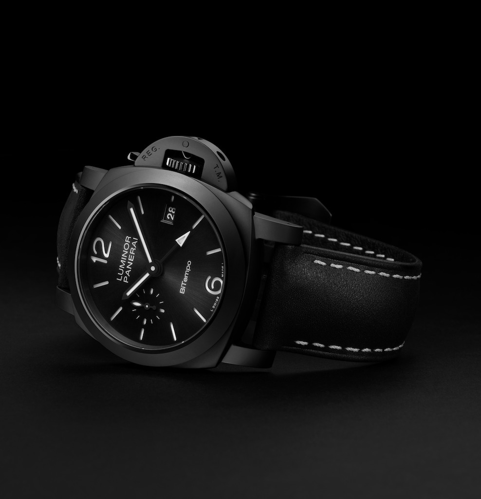 今回、ここに紹介するのは、セラミックケースの最新作。パネライのアイコンであるルミノール コレクションに、小ぶりな40㎜ケースのブラックセラミックモデル「ルミノール GMT チェラミカ PAM01460」が誕生した。ではまず簡単に、パネライとセラミックケースの関係を振り返りたい。