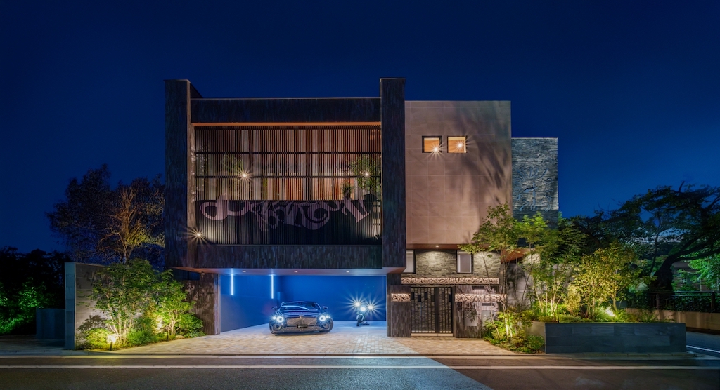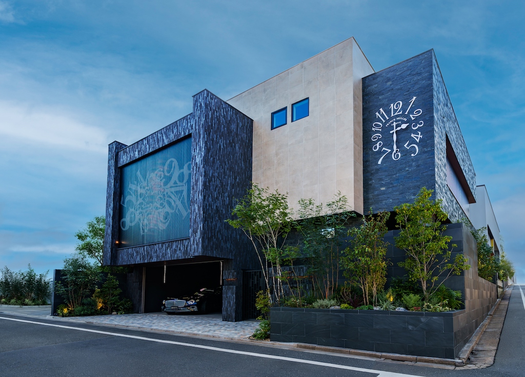 東京・目黒区八雲に完成した邸宅「FRANCK MULLER HOUSE No.01」は、家そのものがフランク ミュラー一色。家の外壁には、ブランドを象徴するビザン数字の大型屋外時計(ウォールクロック)を設置し、夜間にはライトアップも。