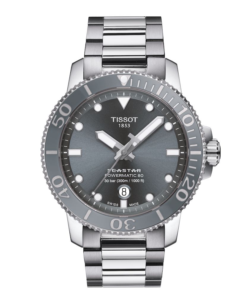 「T120.407.11.051.00 ティソ シースター 1000 パワーマティック 80 43mm」12万7600円。