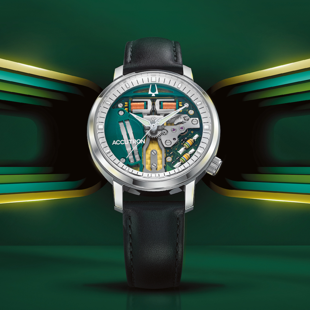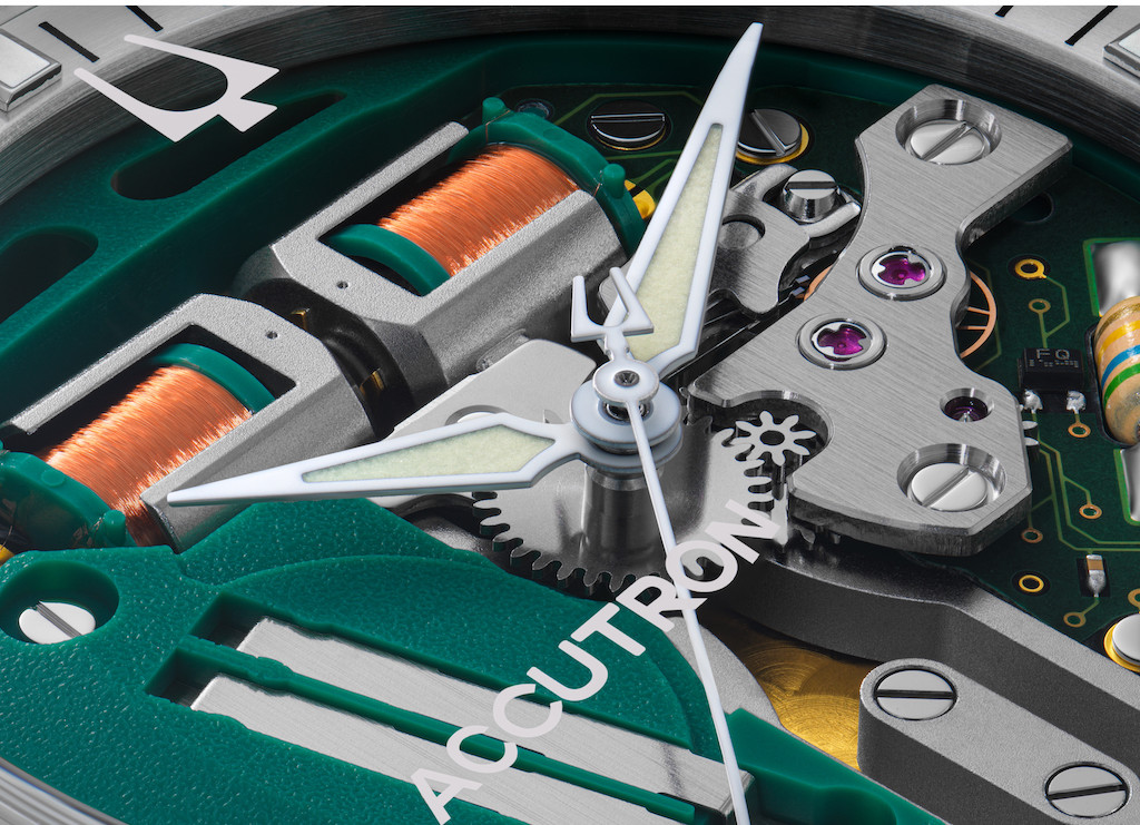 ちなみにこの「アキュトロン」が復刻されたのは、これが初めてではない。アキュトロン生誕60周年となる2010年に復活(復刻版1000本は一瞬で完売)が実現しており、その後2020年に「アキュトロン」は、ブローバから独立した新ブランドとなった。そのため、昔のアキュトロンには「BULOVA」のロゴも入っているが、新生アキュトロンに「BULOVA」の文字はなく、「ACCUTRON」のみが刻まれている。