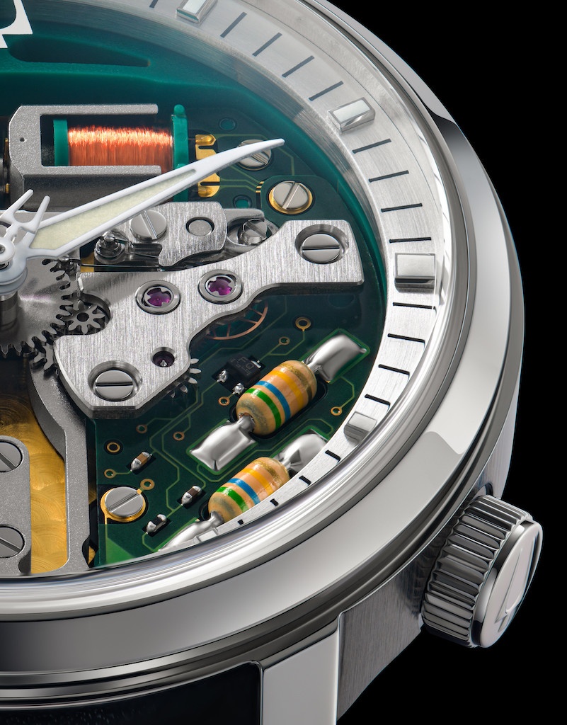 オリジナルモデルは通常のケースバックだったが、この復刻版ではシースルーバックを採用することで、表からも裏からもこの革新的ムーブメントの姿を楽しむことができる。また時計のケースには、904Lのステンテススティールケースに加え、グレード5のチタンケースのモデルもラインナップ。