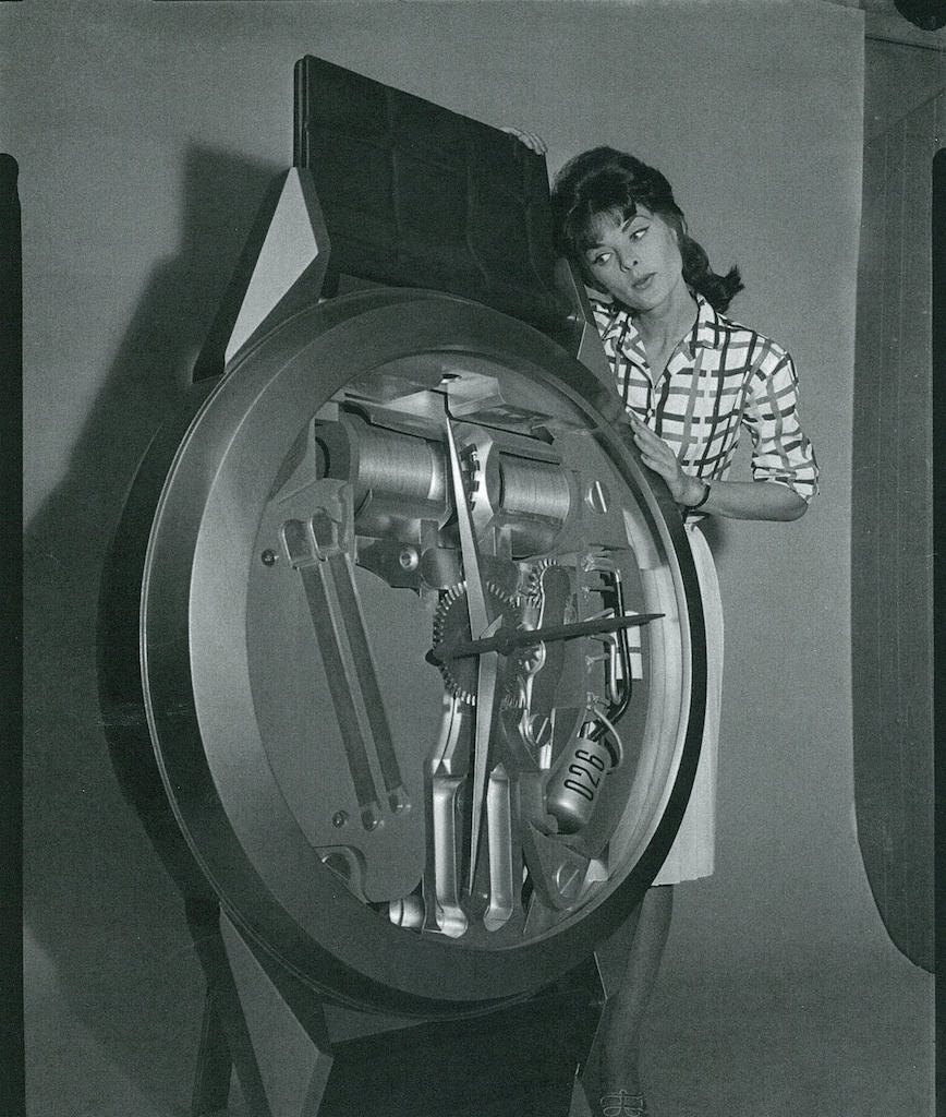 初代アキュトロンは、ダイアルがスケルトンであったことから中身の画期的なムーブメントが丸見えとなり話題となったが、実は当初、通常のダイアルがセットされていた。店頭販促用にあえて中身が見えるようにスケルトンにした巨大なディスプレイが大反響を呼び、ダイアルのないアキュトロン スペースビューが誕生したのだ。