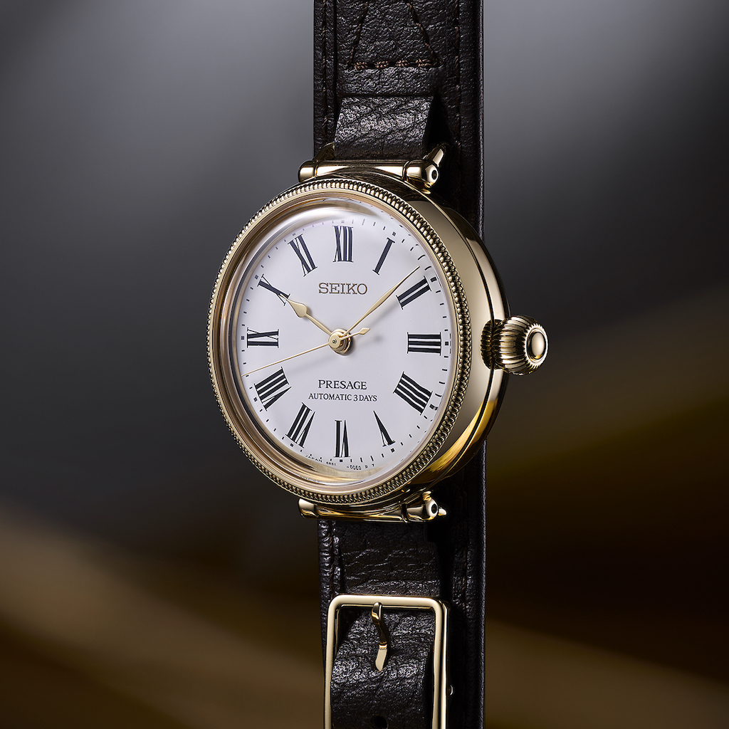 これは、服部金太郎が精工舎を設立する前に輸入していた懐中時計に、自らのアイデアで施した繊細な彫刻から着想を得ているという。ロゴや針、インデックスに採用されたエレガントなゴールドカラーは、今回の145周年限定モデルの統一デザインコードとなる。