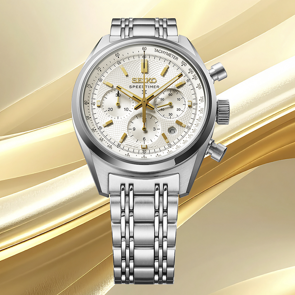 「スピードタイマー メカニカルクロノグラフ 限定モデル」は、1969年に誕生した「1969 スピードタイマー」の意匠を受け継ぐクロノグラフがベースになっている。3本のアームが一体となった独自形状の三叉ハンマーは、クロノグラフ針を正確に動作させ、耐久性やメンテナンス性にも優れたセイコーの独自技術だ。
