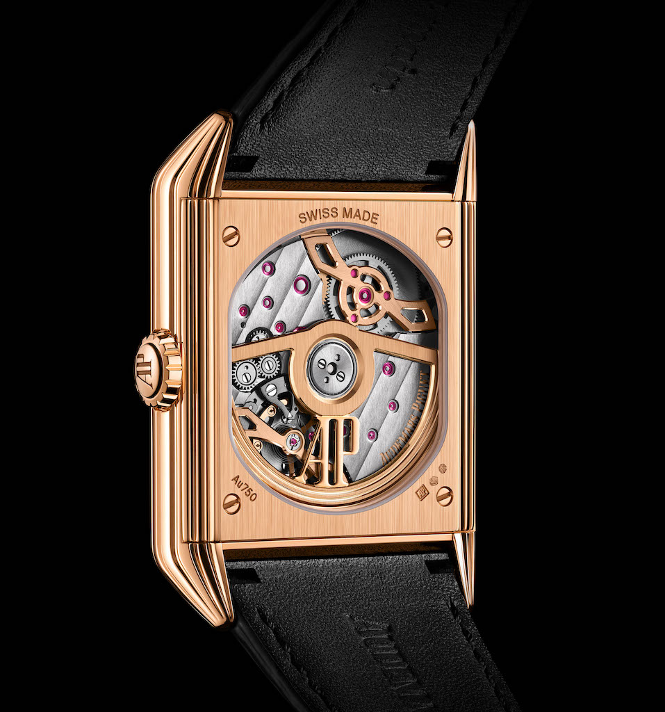 「ネオ フレーム ジャンピングアワー」が搭載するCal.7122は、「ロイヤル オーク “ジャンボ”」に使われる極薄自動巻きCal.7121がベース。ケース厚は、8.8mmの薄さに抑えられている。