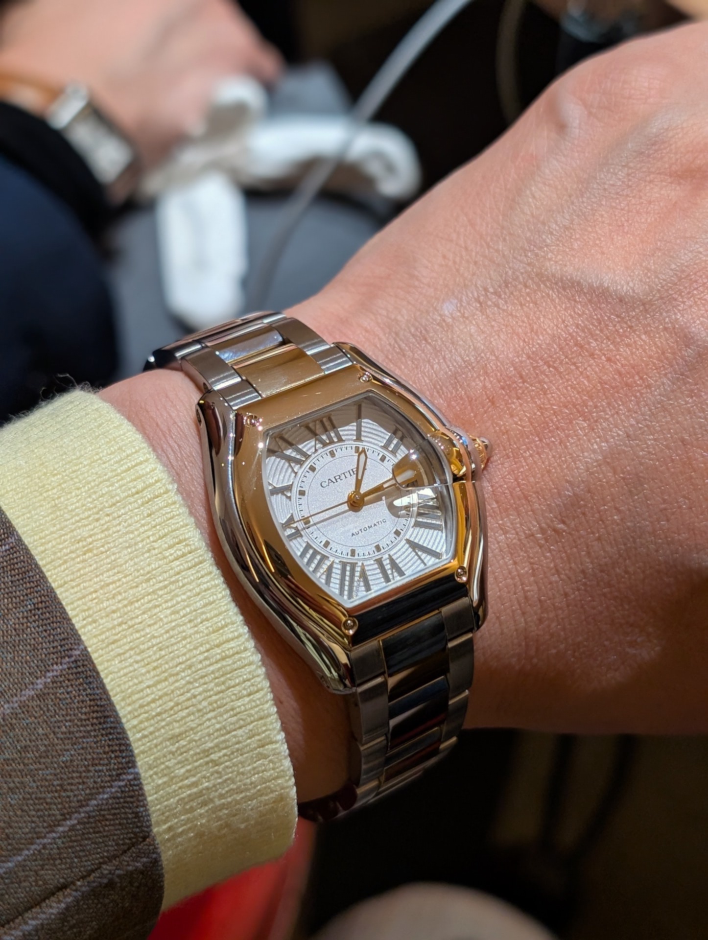 今年も数多くの新作を意欲的に発表したカルティエ。中でも注目は、往年の時計好きには懐かしい「ロードスター」が復活したこと。2002年に誕生した「ロードスター」は、2014年に生産が終了。つまり12年ぶりのカムバックとなる。用意されたケースサイズは2種類。縦47.2×横38.7㎜のラージと、縦42.5×横34.92㎜のミディアム(写真上)だ。10気圧防水を備えたスポーティな外装は、いま改めて見ても斬新だが、細かい部分でアップデートが行われている。ケースラグに取り付けられていたネジは、ベゼル4隅のリベットに。フィット感の高いブレスレットは、「クィックスイッチ」交換可能システムの搭載によって自身で簡単に交換できるようになった。なお、ミディアムモデルには自社製自動巻きのCal.1899 MCが、ラージモデルには自社製自動巻きのCal.1847 MCが搭載される。ケース素材はSSケースと18KYGケースのほか、写真のコンビネーション(SS×18KYG)がラインナップする。また、写真のホワイトダイアル以外に、SSケースにダークブルーのPVD加工を施したダイアルのラージモデルも展開される。自動巻き。ケースサイズ縦42.5×横34.92㎜。SS×18KYGケース&ブレスレット(アリゲーターストラップ付属)。10気圧防水。予価302万2800円。10月発売予定。